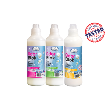 Detergent pentru Rufe cu Acțiune de Eliminare a Mirosurilor Neplăcute OdorBlok 1l - curăță în profunzime rufele tale, eliminând eficient mirosurile neplăcute și lăsându-le proaspete și igienizate.Balsam Profesional pentru Eliminarea Mirosurilor din Rufe OdorBlok HygienFresh 1L - Îmbogățește rufele tale cu prospețimea de lungă durată a balsamului OdorBlok.Soluție Parfumată Neutralizatoare pentru Curățat Pardoseli OdorBlok 1l – curățare eficientă și eliminare a mirosurile neplăcute, lăsând suprafețele strălucind de curățenie și cu un parfum proaspăt.