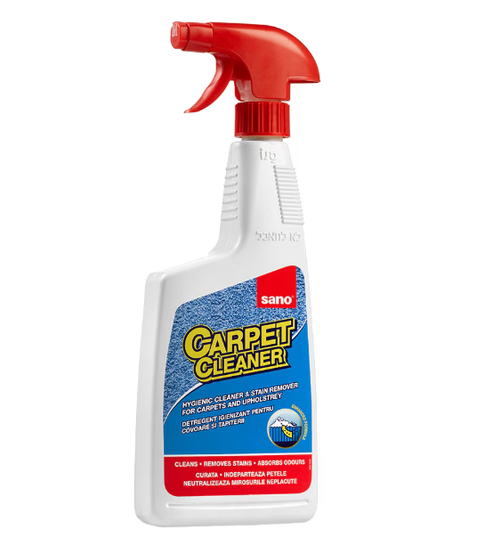 Sano Carpet – Șampon de covoare cu efect igienizant, ideal pentru carpete, covoare și tapițerii naturale sau sintetice. Curăță în profunzime, împrospătează și previne depunerea murdăriei, datorită polimerului activ din formulă. Disponibil la 750 ml, cu pulverizator practic.